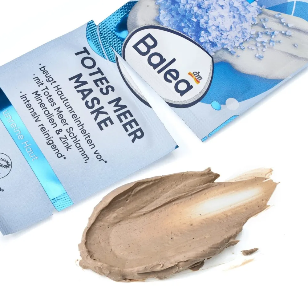 For a clean, well-groomed complexion and a velvety-soft skin feeling: The Balea Dead Sea mask with mud, minerals, zinc and algae extract nourishes and pampers the skin intensively: horny skin particles loosen and impurities can be prevented with regular use. Natural peeling grains from apricot kernels and bamboo gently cleanse your skin, while the mineral-rich mud from the Dead Sea and the porcelain earth absorb excess skin oil. Finally, chamomile extract and panthenol help soothe the skin