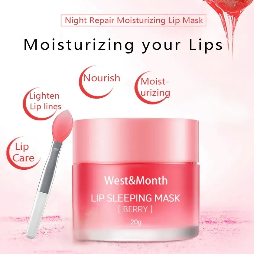 The West & Month Lip Sleeping Mask is the perfect solution for those struggling with dry, flaky lips. Its rich, balm-like texture adheres beautifully to your lips, providing a protective barrier that seals in moisture. Powered by the exclusive Moisture Wrap technology, this mask combines Hyaluronic Acid and minerals to ensure your lips stay hydrated throughout the night. With a generous application before bedtime, you'll wake up to rejuvenated lips that are smooth, soft, and free from peeling. This effective mask is enriched with a deliciously fragrant Berry Mix Complex that includes antioxidant-rich extracts from strawberries, raspberries, cranberries, goji berries, and blueberries. It helps to nourish and revitalize your lips, while Vitamin C works to promote elasticity and combat fine lines around your mouth. Ideal for all skin types, this soothing lip treatment is dermatologically tested and paraben-free, making it safe for everyone to use. Just apply a generous layer at night and let the mask work its magic to ensure you enjoy beautifully maintained lips every morning.