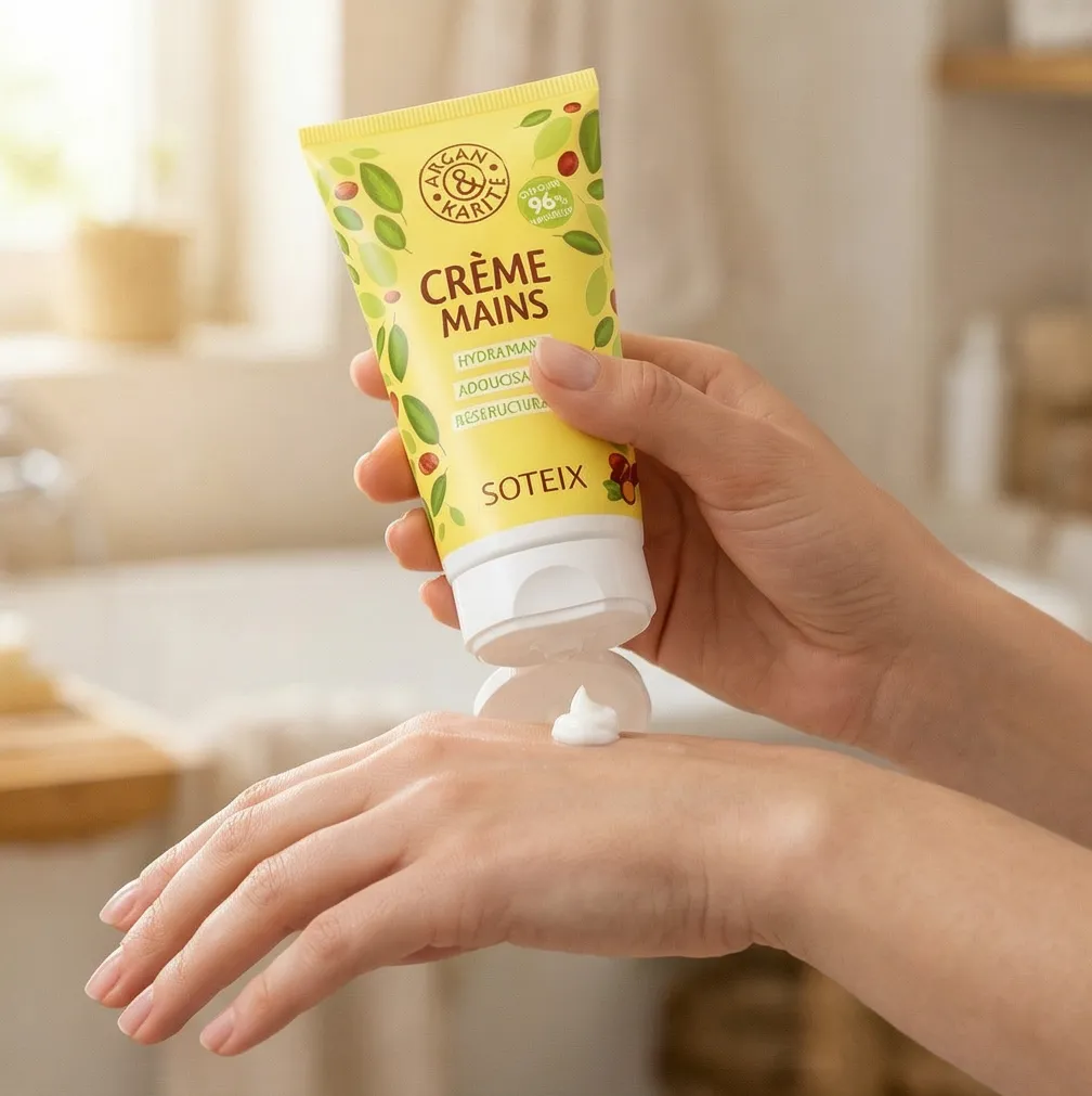 Keep your hands soft and moisturized with Soteix hand cream. Its formula with argan and shea oils restructures and hydrates the skin! It leaves a delicately scented veil of softness on your hands. Soteix hand and nail cream is a moisturizing, softening, and restructuring treatment. Its formula with argan and shea oils intensely hydrates and promotes skin regeneration and elasticity. Regular application protects the skin from daily aggressions, leaving it soft and supple without any greasy residue. It is ideal for daily hand hydration.
