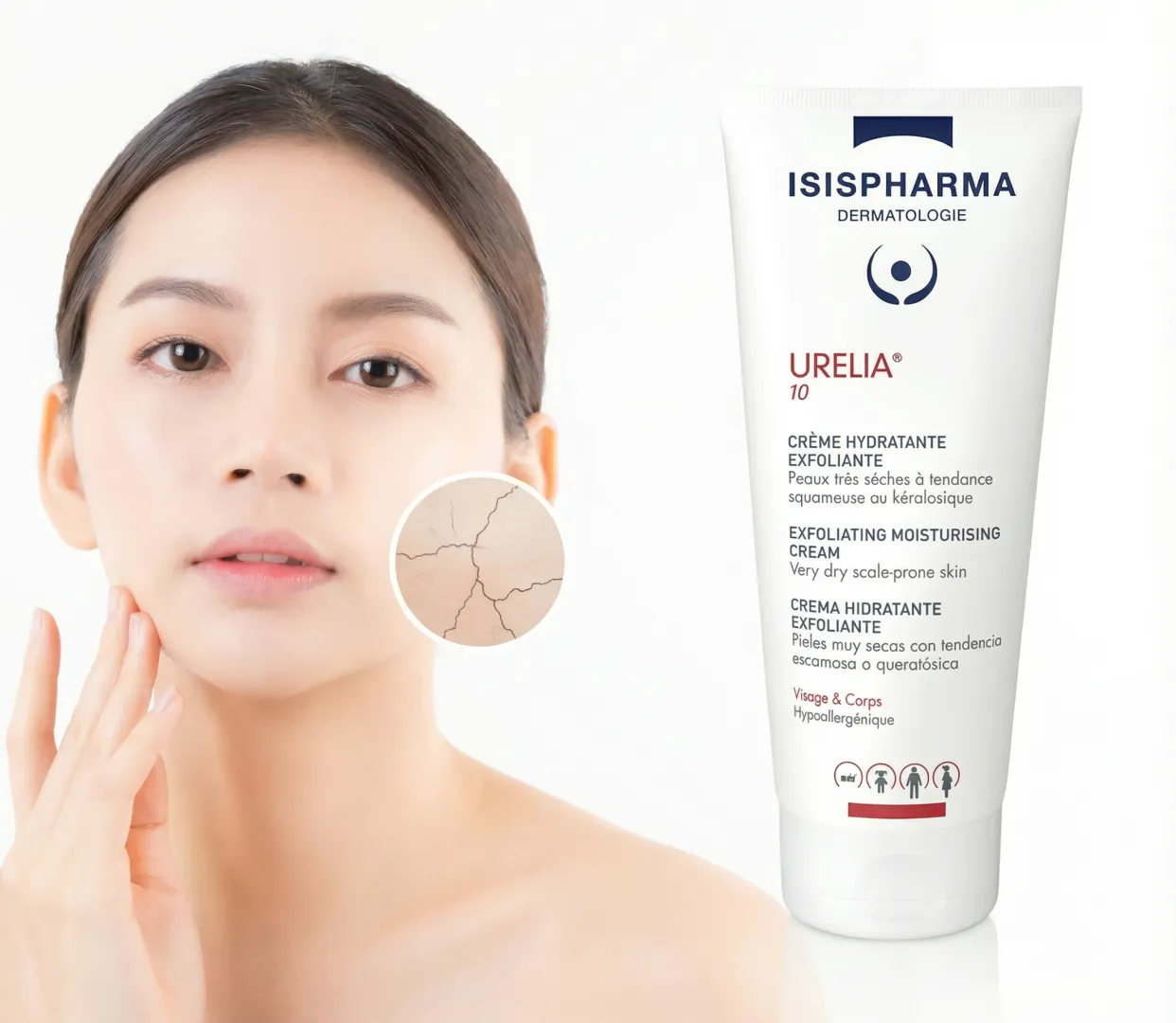 ISIS Pharma with Urelia 10 exfoliating moisturizing cream, take daily action against scaling and discomfort of the skin caused by hyperkeratosis. The combination of moisturizing and exfoliating active ingredients helps to gently rid the skin of scales while providing deep hydration and relief.