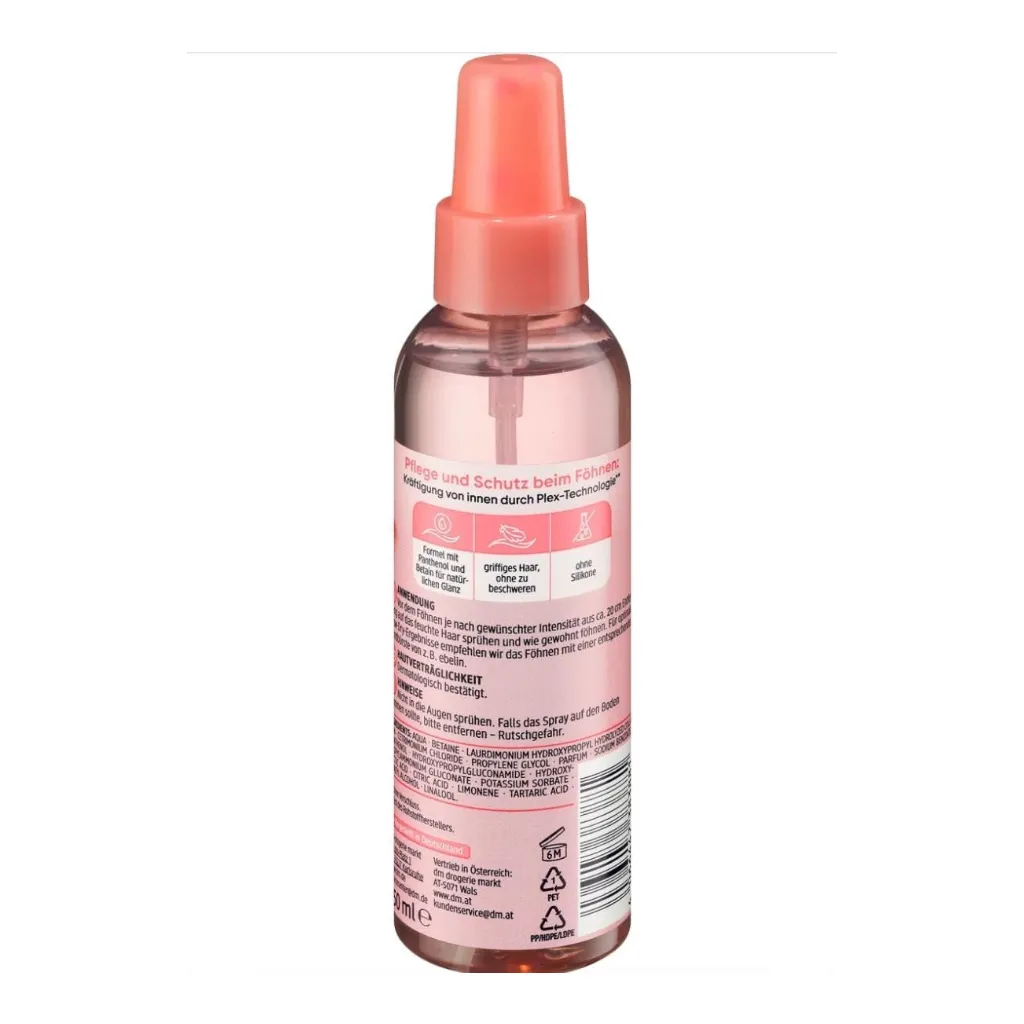 The Balea Blow Dry Spray for Hair offers strengthening from the inside with every blow-dry thanks to its Plex technology care. The formula with nourishing panthenol and betaine ensures a natural shine and a pleasant grip without weighing it down. Frizz is tamed and the hair feels soft and well-groomed. Look forward to long-lasting, dreamy blow dry looks without silicone and without ethanol.