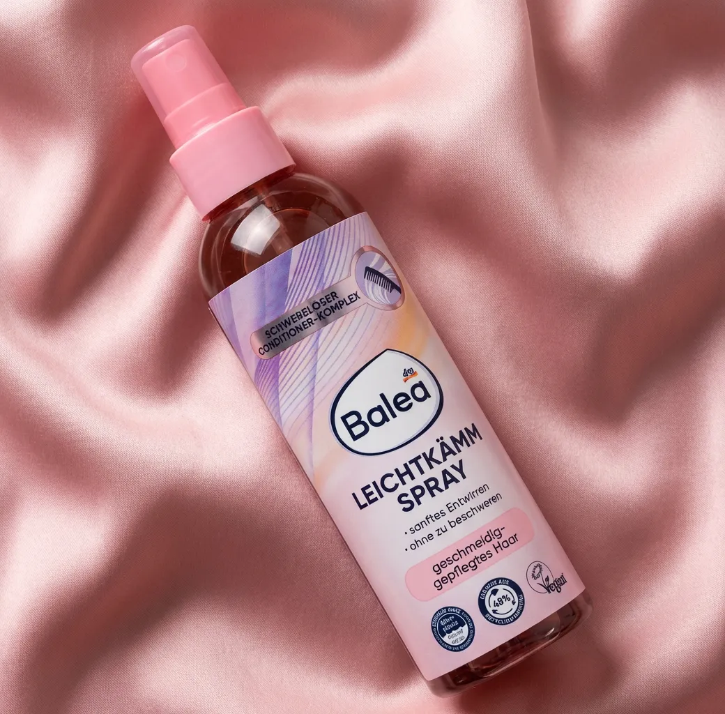 Balea's easy comb spray makes hair easier to comb and is suitable for all hair types. The spray gives hair wonderful smoothness and shines. The weightless conditioner complex doesn't weigh hair down and gently cares for it. The Balea easy combing spray provides shine and suppleness and improves combability. For easy detangling without weighing, you are down. The light formulation can be used on both wet and dry hair. The nourishing formula with inulin and panthenol ensures easy detangling, reduces pulling, and prevents knots. For supple and naturally shiny hair. Recipe without microplastics and water-soluble, purely synthetic polymers.